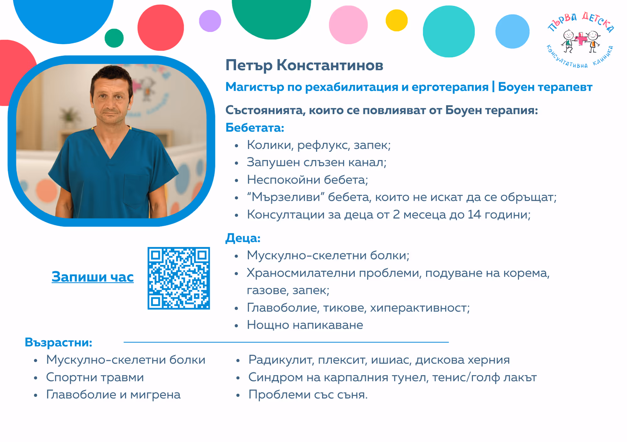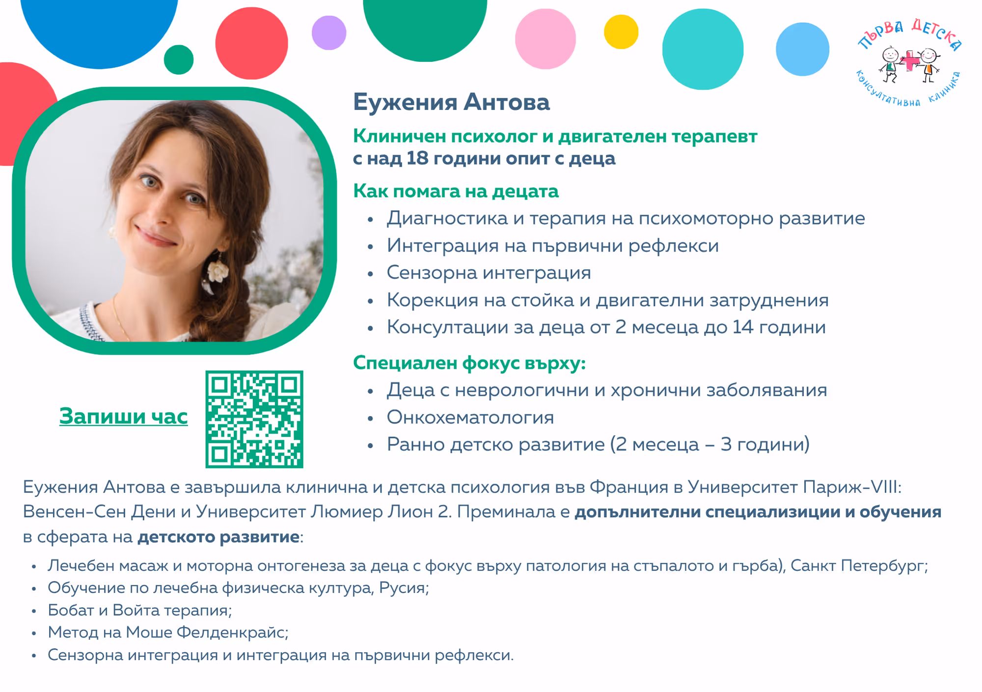 В Първа Детска Консултативна Клиника вярваме, че грижата за детето е много повече от медицински преглед — тя включва внимание към неговото емоционално, психическо и двигателно развитие.